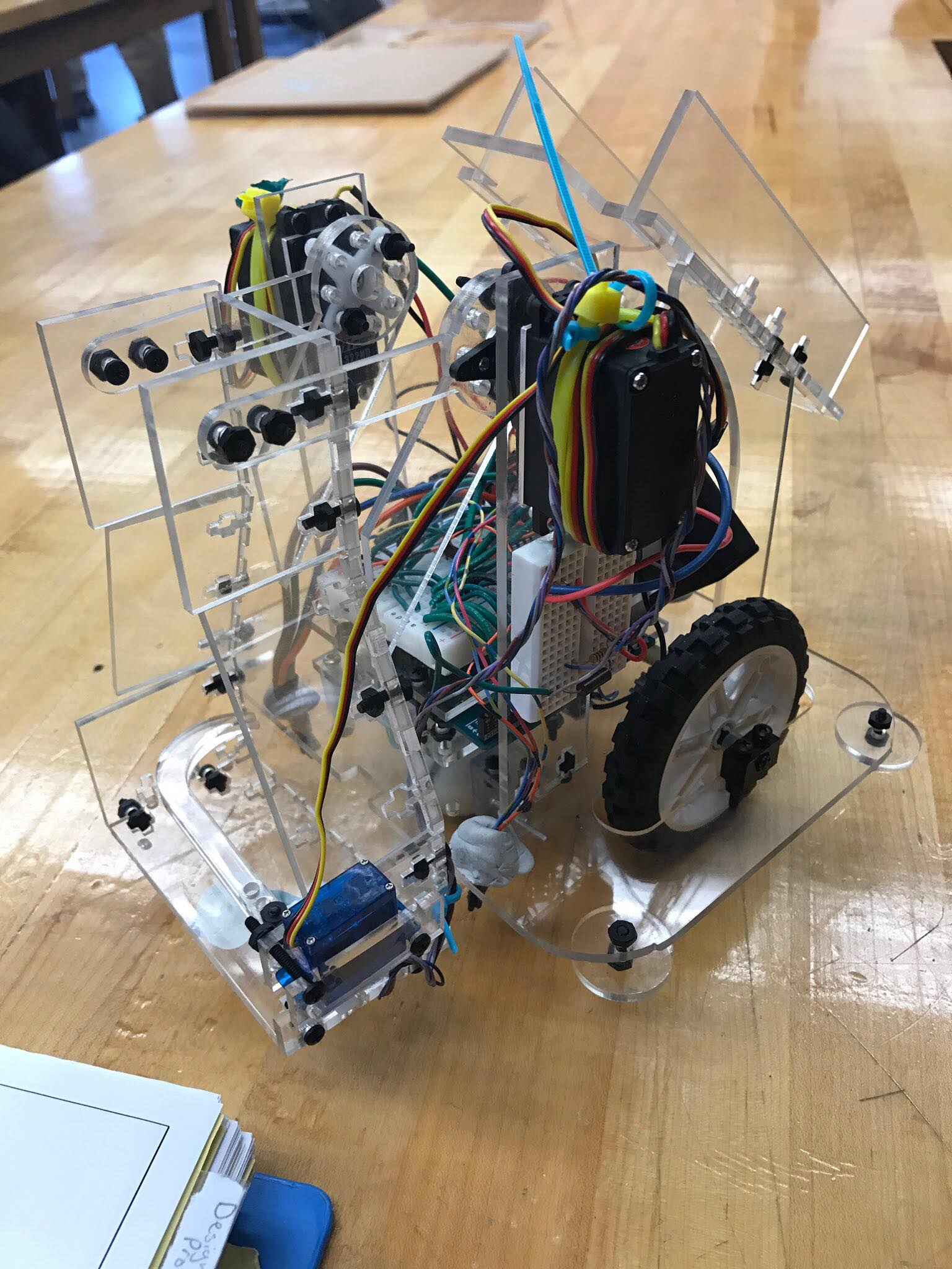 Objective: The objective of this device was to obtain as many 1” blocks as possible, sort via color and deposit in to respective bins, while competing against your peers for the most blocks in the least amount of time. In addition, participants were only allowed 2 sq feet of plastic sheeting and were not allowed to use any fasteners aside from screws.