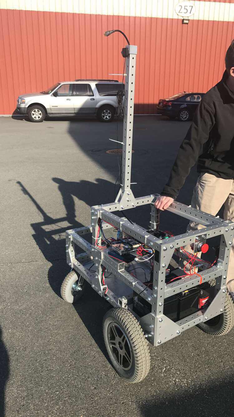 Description: The Intelligent Ground Vehicle Competition (IGVC) is an annual international multidisciplinary robotics competition held at Oakland University in Rochester, Michigan. In the competition’s 25th year, The Roger Williams University(RWU) IGVC team competed Sparky, for the first time in one of its most popular events, the Basic Autonomous Navigation Course. He utilized a Raspberry Pi 3, an Arduino Uno, and an Arduino Mega. For sensors he has a LIDAR and cameras mounted to a stepper motor to give him at 180 degree range of vision. Sparky received 6th place and Rookie of the Year.